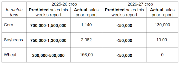 The weekly USDA Export Sales report from Thursday was great for soybeans, ok for corn and disappointing for wheat. …