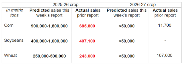 The weekly USDA Export Sales report from Thursday was at or below the lower end of the trade estimates for corn, soybeans and wheat. Negative numbers report canceled sales. Here are the numbers for the week ending February 19…